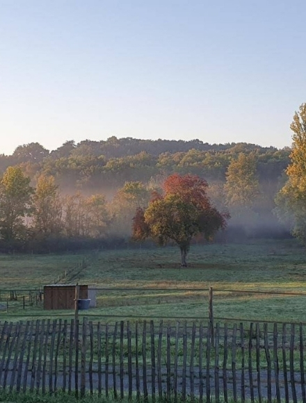 Après plusieurs déménagements notre souhait était de revenir dans la région d’origine de Caroline et de réaliser un rêve… Nous avons posé nos valises dans ce beau domaine en pleine campagne afin de développer notre projet au cœur de la nature. Ce domaine est un lieu vivant, en constante évolution. Nous préparons avec enthousiasme de nouvelles aventures à partager avec vous, comme une pension bien-être pour chevaux, la culture de plantes aromatiques et médicinales et plus encore….